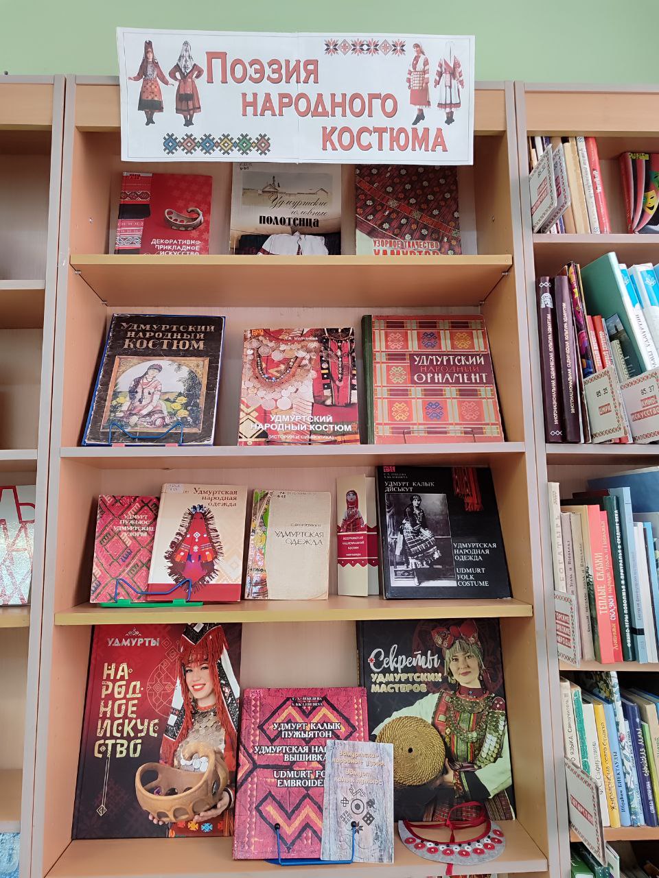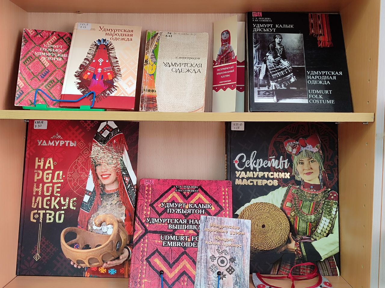 В рамках праздничной даты в Республиканской библиотеке для детей и юношества открылась книжно-иллюстративная выставка «Поэзия народного костюма», на которой представлена литература об особенностях народных костюмов северных и южных удмуртов, бесермян.