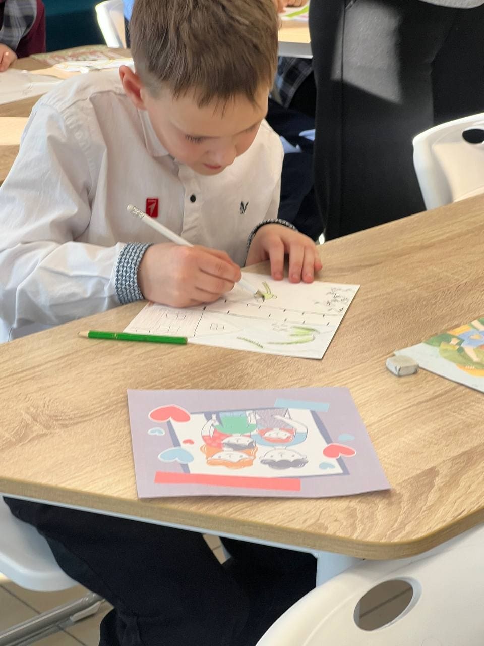 И снова в стенах библиотеки стало по-настоящему тепло от детского творчества! Ребята с большим старанием и искренностью взялись за карандаши и краски. На листах рождались не просто рисунки, а самые важные послания: символы мира, силу родной земли и слова самой искренней поддержки для тех, кто нас защищает.