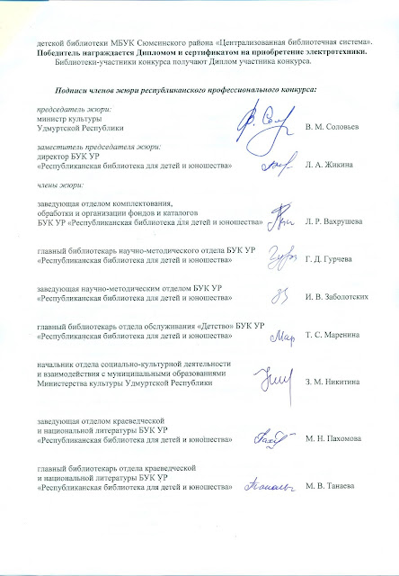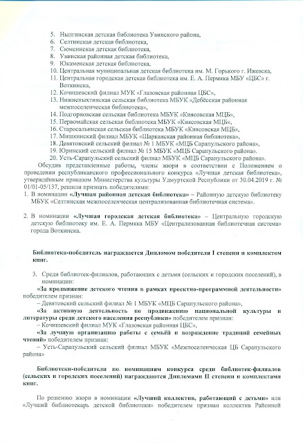 БУК УР «Республиканская библиотека для детей и юношества» благодарит Министерство культуры Удмуртской Республики, Парк культуры и отдыха им. С. М. Кирова (г. Ижевск) за поддержку и детские библиотеки республики за активное участие в проведении I-го республиканского хит-парада детских библиотек Удмуртской Республики «БиблиоБульвар “Отдыхай, но читать не забывай!”».